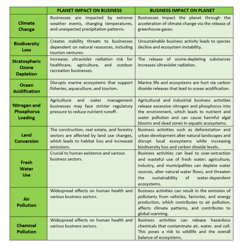 Table 1: How Business and Planet Affect Each Other