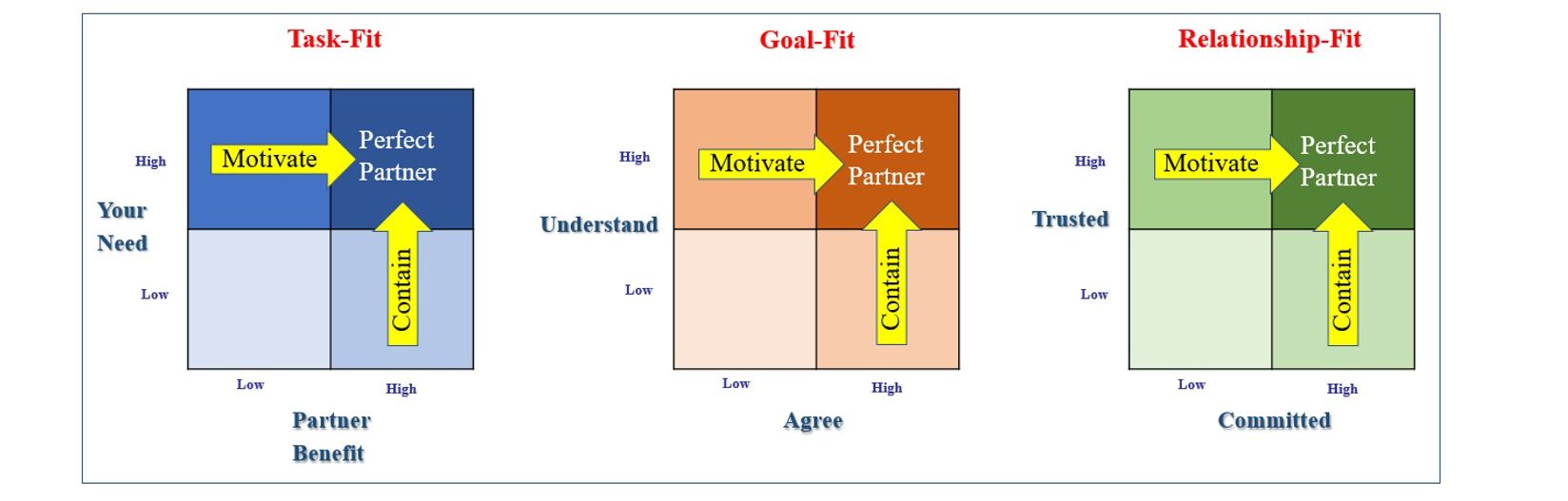 Based on in-depth studies of successful and unsuccessful partnerships, we propose a framework that tests partner fit across three dimensions: task-fit (what each party needs); goal-fit (what each party aims to achieve); and relationship-fit (how each party works). How potential partners measure up on these dimensions flags likely misalignments with a prospective partner and allows project initiators to design ways to overcome them.